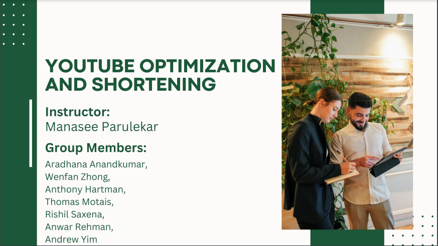During my internship, I collaborated with a team of five colleagues to develop a YouTube video shortening tool. Our primary goal was to take 10-15 minute-long videos and utilize artificial intelligence and statistical data, such as identifying the top-viewed segments and the portions with the highest retention rates. This allowed us to shorten the videos into more concise 50-60 second clips, making them ideal for sharing on social media platforms like Instagram and Twitter. Additionally, our tool automatically generated titles, descriptions, and tags for the videos, streamlining the content creation process for optimal engagement.